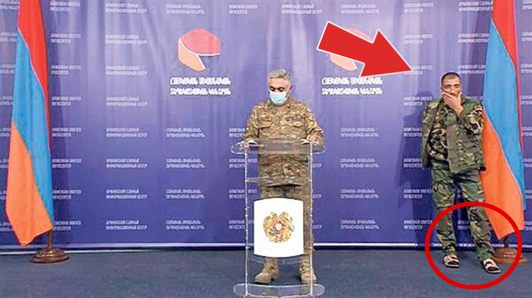 Sözcü konuşmasını yaptığı esnada oraya terlikle gelen bir askerin görüntüleri dikkat çekti. Askerin sergilediği ciddiyetsiz tavırlar, Ermenistan ordusunun ne kadar vasat bir seviyeye düştüğünü bir kez daha gözler önüne serdi. Ermeni ordusunun disiplinsiz olduğunu gösteren görüntülerde askerin gevşek hareketleri tepki gördü.