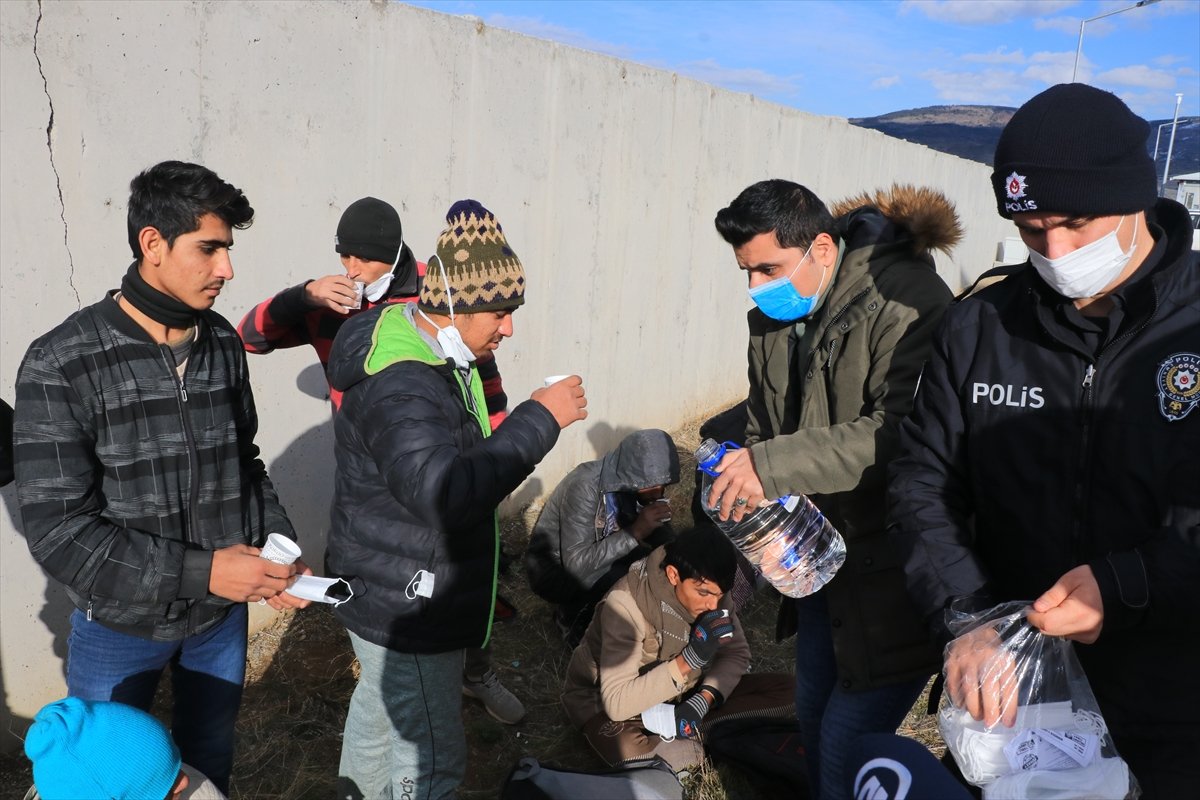 Günlerdir kötü koşullarda seyahat ettikleri ve aç oldukları belirlenen yabancı uyruklulara, polislerce su ve yiyecek ikram edildi.