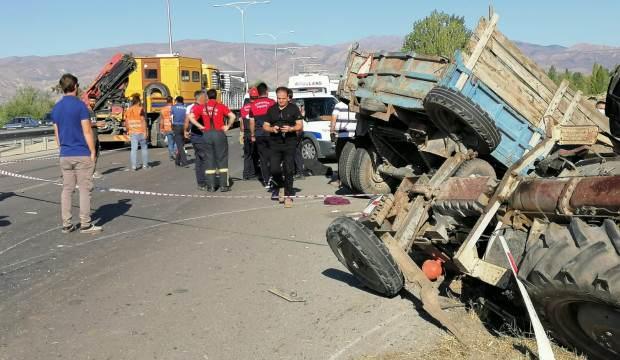 Erzincan'da tarım işçilerini taşıyan traktörle kamyonla çarpıştığı kazada 2 kişi yaşamını yitirdi, 6 kişi de yaralandı.