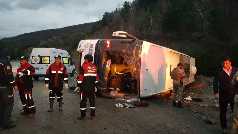 Yol kenarına devrilen otobüsteki 22 kişi yaralandı.