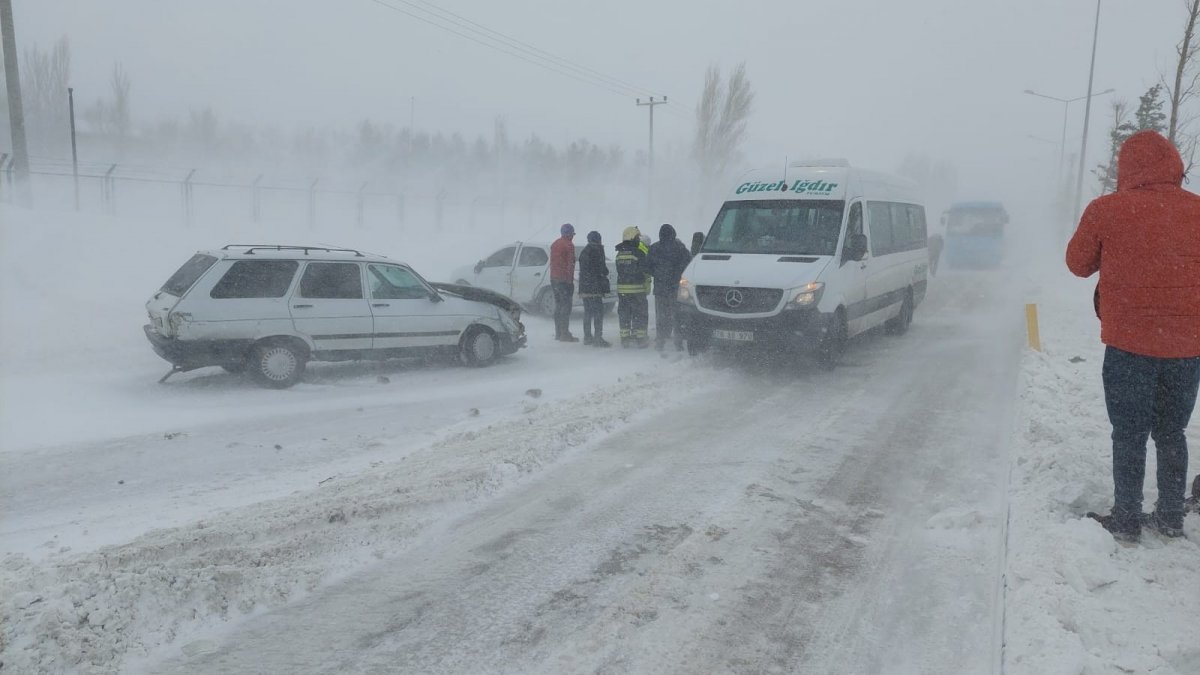 Erzurum-Pasinler karayolunda yoğun kar yağışının ve tipinin etkili olduğu bölgede zincirleme kaza yaşandı.