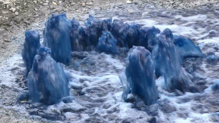 Esenyurt'ta fabrikalardan kanalizasyona bırakılan atıklar yine rögarlardan taştı. Dakikalarca akan su, caddeyi baştan aşağı maviye boyadı. Çevre sakinleri durumdan oldukça tedirgin ve rahatsız olduklarını dile getirdi.