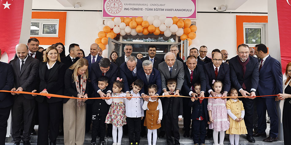 Ülkemizin sürdürülebilir gelişimi ve daha eşit bir gelecek için eğitimde fırsat eşitliğine destek sağlamayı toplumsal yatırımlarının merkezine alan ING Türkiye’nin Türk Eğitim Vakfı (TEV) iş birliğiyle Kahramanmaraş’ta inşa ettiği ING Türkiye - TEV Anaokulu hizmete açıldı. 6 Şubat depremlerinin ardından bölgenin yeniden kalkınmasına katkı sunma hedefiyle hayata geçirilen yaklaşık 100 öğrenci kapasiteli anaokulunda eğitim verilmeye başlandı. ING Türkiye- TEV Anaokulu’nun açılışı, Kahramanmaraş Valisi Mükerrem Ünlüer, ING Türkiye Genel Müdürü Alper Gökgöz ve Türk Eğitim Vakfı Yönetim Kurulu Başkanı Prof. Dr. Mehmet Şükrü Tekbaş, Onikişubat Kaymakamı Salih Çiğdem, Kahramanmaraş İl Milli Eğitim Müdürü Erhan Baydur ve il protokolünün katılımıyla gerçekleştirildi.