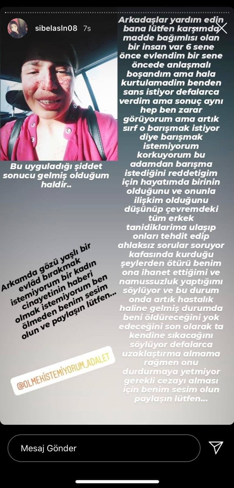 Sosyal medyadan yardım isteyen Sibel A., eski eşi tarafından kendisine gönderilen tehditleri de alenen yayınladı. Mesajlarında ağır küfürler savuran Onur D.'nin, "Bana hiçbir şey olmaz. Maksimum ifade vermeye çağırırlar sonra serbestim. Sizin peşinizi bırakmam." gibi ifadeler kullandığı görüldü.