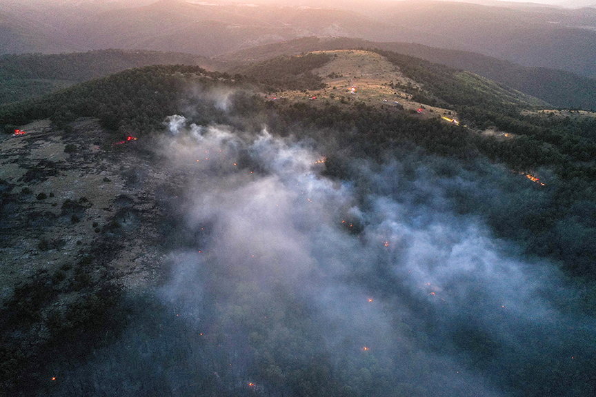 Orman Genel Müdürlüğünün sosyal medya hesabından, alevleri kontrol altına alabilmek için 232 personelin 9 uçak, 15 helikopter, 60 arazöz ve 4 dozerle çalışmalarını sürdürdüğü duyuruldu.