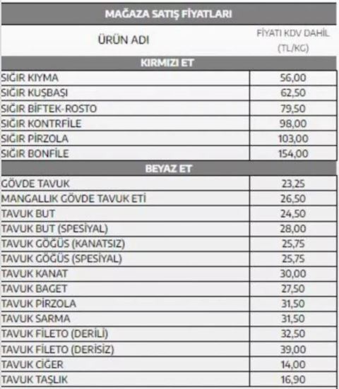 Et ve Süt Kurumu mağaza satış fiyatlarında zam yaptı.