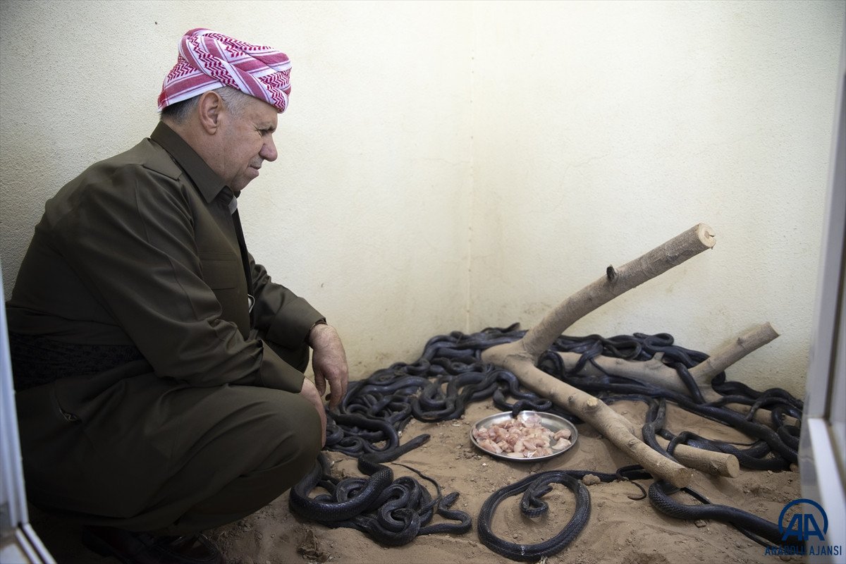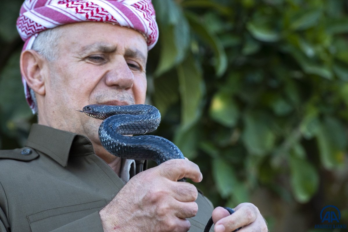 Irak'ta Duhok'un Şeyhan ilçesinde yaşayan Abdulsettar Emin'in, yıllardır yılanlara olan tutkusu nedeniyle çevresindeki kişiler de yılan gördüklerinde mutlaka ona haber veriyor.