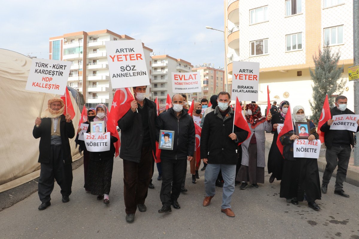 Diyarbakır’da, evlatları PKK tarafından kandırılarak dağa kaçırılan ailelerin, 3 Eylül 2019’da HDP İl Başkanlığı binası önünde başlattıkları oturma eylemi, 860’ıncı gününe girdi.