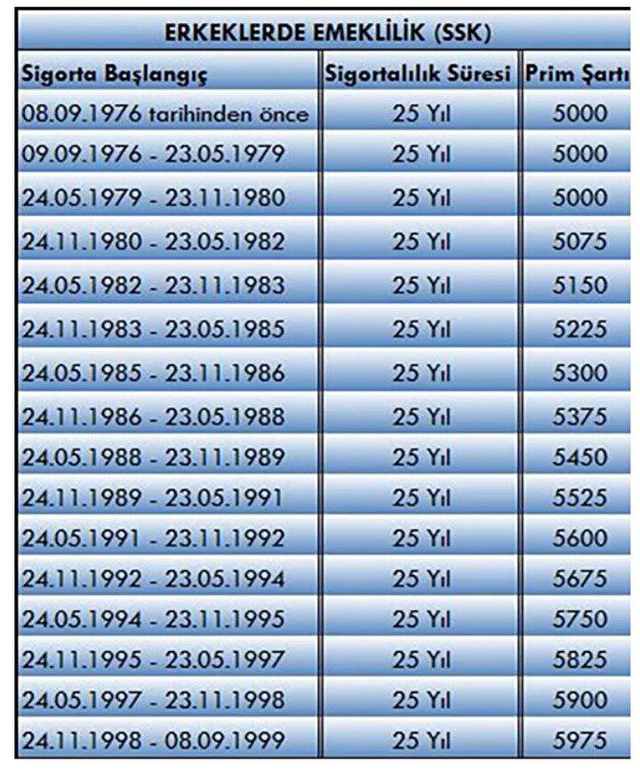 - Prim ve sigortalılık süresi dolan emeklilik hakkı elde edecek