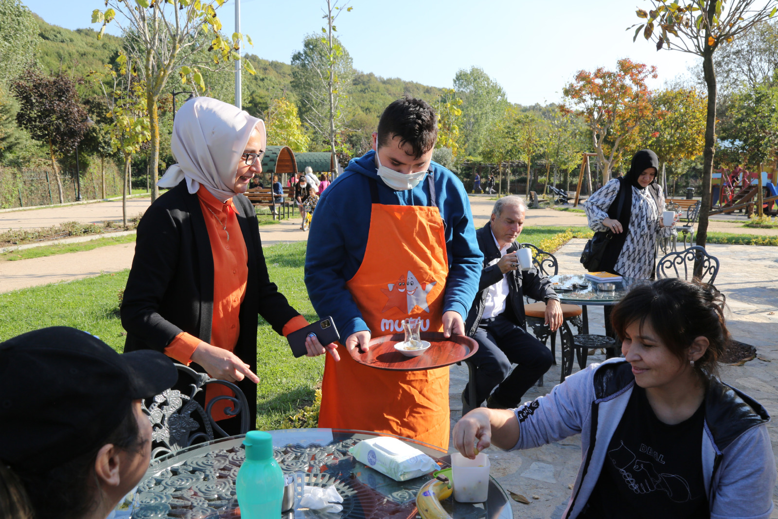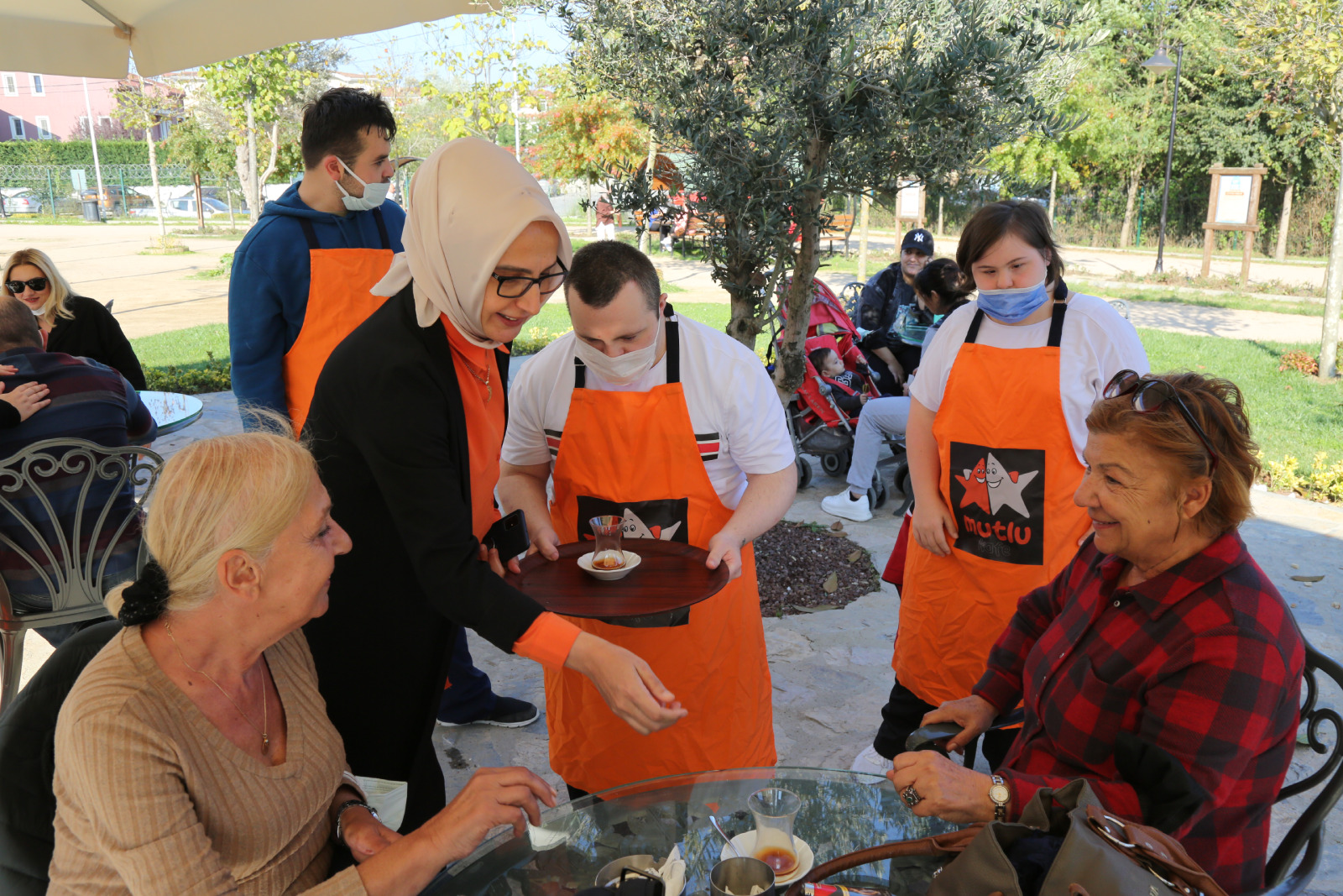 "Mutlu Kafe'ye sık sık geliyoruz. Burası çok güzel çocuklar bizi çok mutlu ediyor, güzel vakit geçiriyoruz. Onları böyle hayata katmak harika bir proje emeği geçenlere teşekkür ediyoruz"
