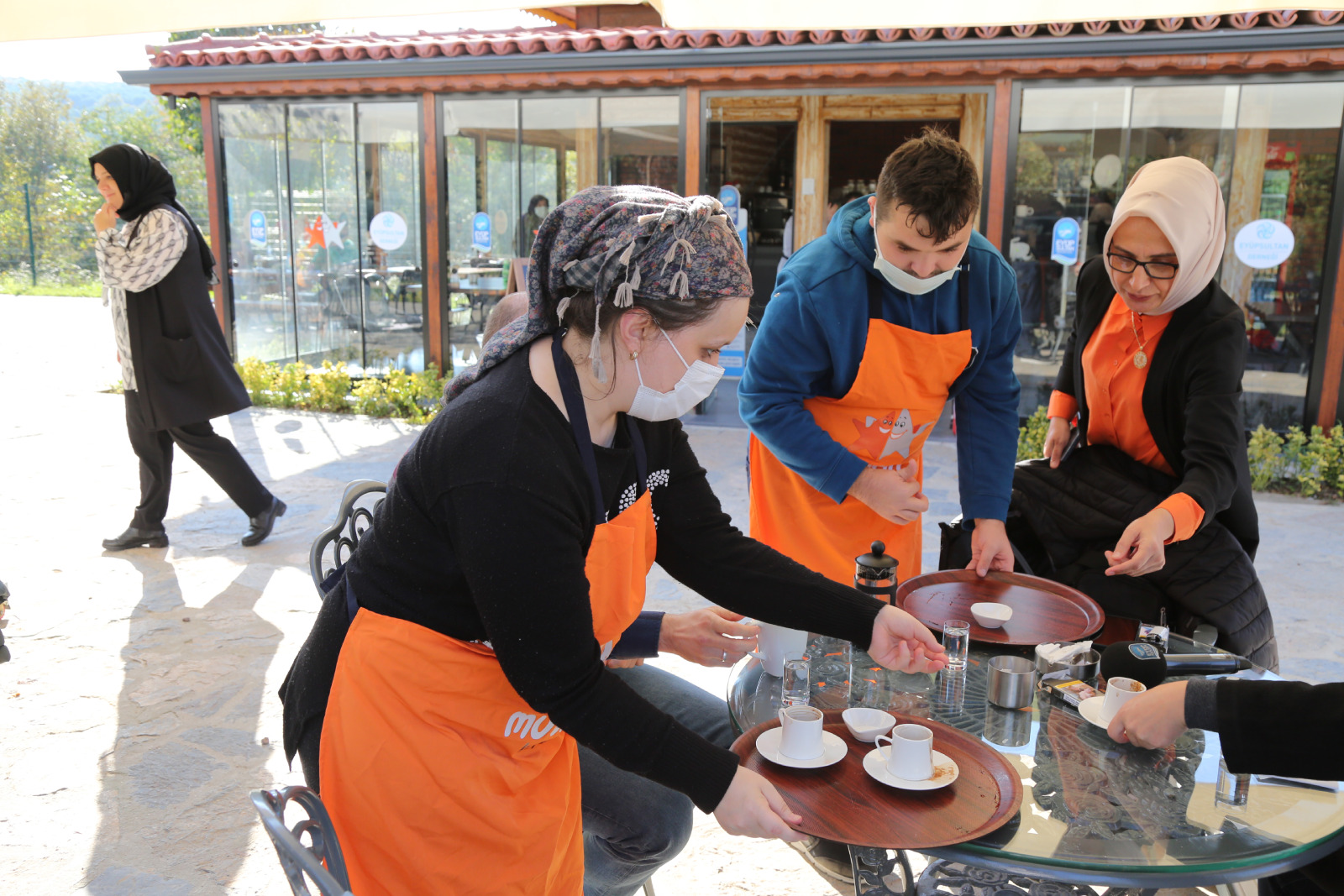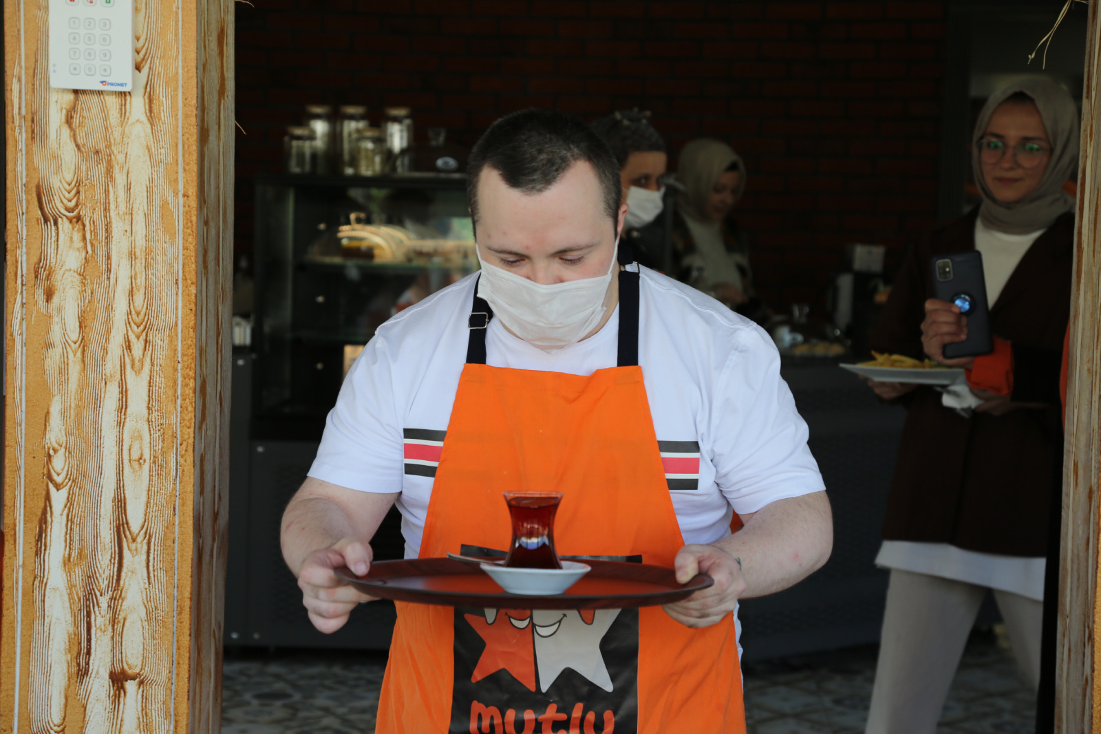 Hafta içi ve hafta sonu 09:00 – 20:00 saatleri arasında hizmet veren Mutlu Kafe’de belirli saatlerde çalışan ESER’li öğrencilere, usta öğreticiler ve psikologlar eşlik ediyor.