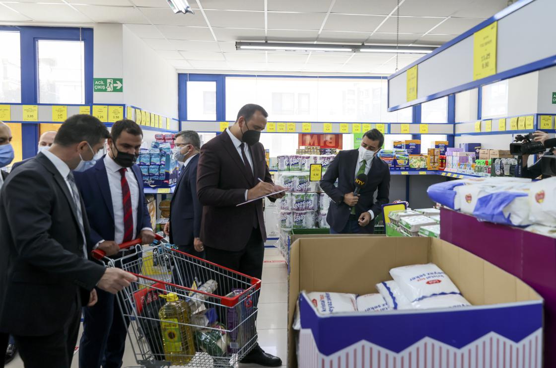 Ticaret Bakanlığı İç Ticaret Genel Müdür Yardımcısı Soner Kaya başkanlığındaki ekip, Ankara Çankaya'daki bir zincir markete yönelik denetim gerçekleştirdi. Ekipler, yumurta, un, sıvı yağ, peynir, makarna, sebze ve meyve gibi temel gıda ürünleri ile temizlik maddelerinin fiyatlarını inceledi. Denetimlerde, ürünün etiket fiyatı ile kasa fiyatı arasında fark olup olmadığına, etiket ve künye bilgileri ile indirimli ürünün indirimden önceki fiyatına bakıldı. Ekipler, rastgele seçtikleri ürünleri kasaya götürerek fiyat karşılaştırması yaptı.