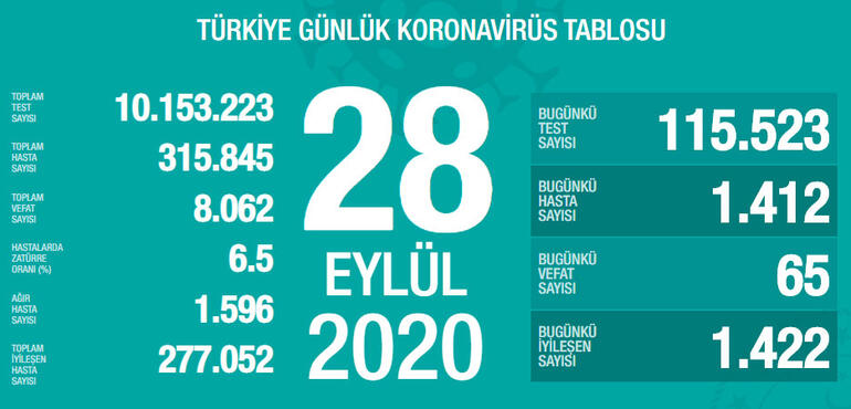 28 EYLÜL 2020 TÜRKİYE KORONAVİRÜS VAKA SAYILARI