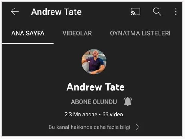 Hesabın isminin 'Andrew Tate' şeklinde değiştirildiği, içeriklerin ise tamamının silindiği görüldü.