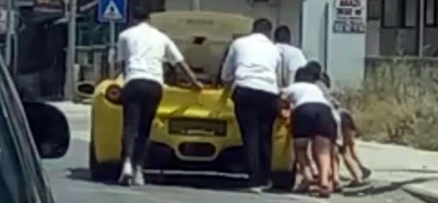 Sakarya'da lüks spor otomobil markası Ferrari’nin milyonlarca değerindeki aracı arıza yaptı. Otomobil sahibi aracını çalıştırmak için uğraşsa da başarılı olamadı.