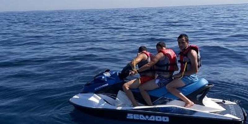 Pırlanta Plajı açıklarında jet-ski'de bulunan 3 kişi ekipler tarafından yakalandı.