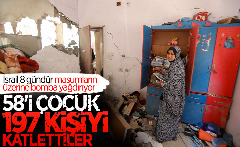 Gazze Şeridi'ne 10 Mayıs'tan bu yana düzenlenen saldırılarda şimdiye kadar 58'i çocuk, 34'ü kadın olmak üzere 197 kişi hayatını kaybetti, 1235 kişi yaralandı.