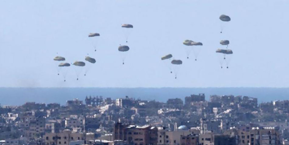 Arap ve Batılı ülkeler yardım uçuşlarını yoğunlaştırıyor. Riskli ve etkisiz olsa da, çaresiz halka küçük miktarlarda yardımları atıyorlar.