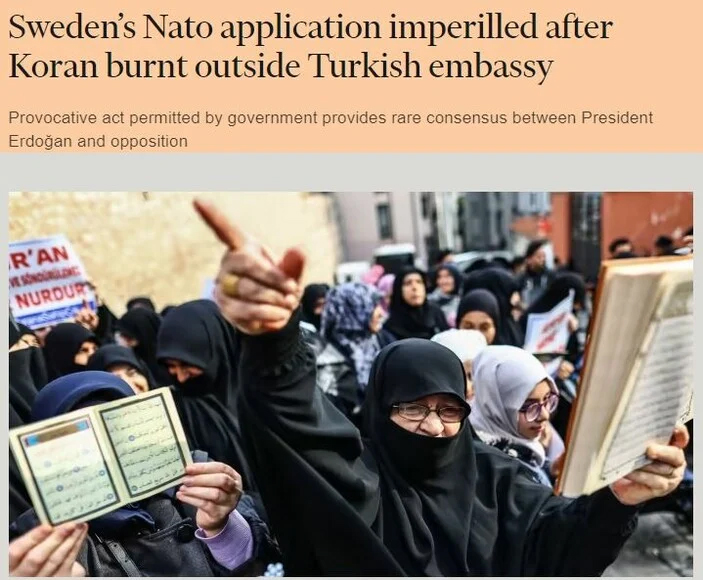 Financial Times gazetesi, Paludan'ın çirkin hareketinden sonra İsveç'in NATO üyeliğinin çıkmaza girdiğini yazdı.