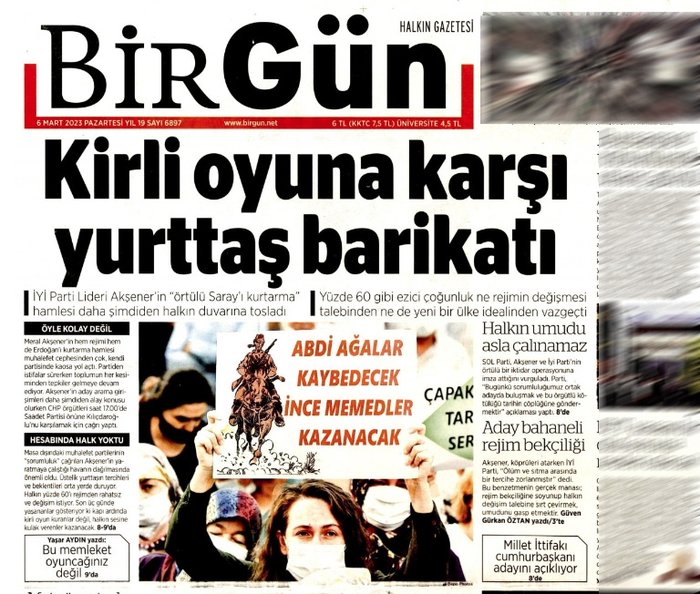 Öte yandan Birgün Gazetesi de Akşener'i hedef almaya devam etti. Akşener'in masadan kalkmasını 'Saray'ın adamı' olarak yorumladı.
