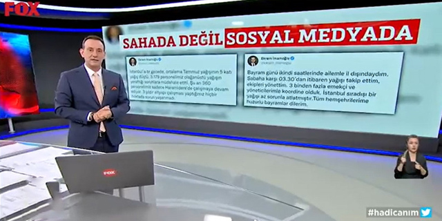 Sizin, görevinizin başında olmanız gerekiyor ama yoksunuz. Şunu merak ettik, kimsenin hakkını yemeyelim, istihbarat şefimiz Fersun Yelken'e sordum, 'Acaba Ekrem Bey nerede?' Çünkü İstanbul'da olduğunu düşünüyordum ben de, inanmadım ilk başta. Yardımcısı, İmamoğlu'nun şehir dışında olduğunu söyledi. Yani Ekrem Bey, ailesiyle beraber tatildeymiş, eskiden yaptığı gibi. Eskiden de sel felaketi yaşanırken Bodrum'da tatildeydi, depremzedeleri ziyaret ettikten sonra kayak tatiline gitmişti, karla mücadele edilirken büyükelçilerle görüşmeye gitmişti. Bunları yapmamak lazım." dedi.
