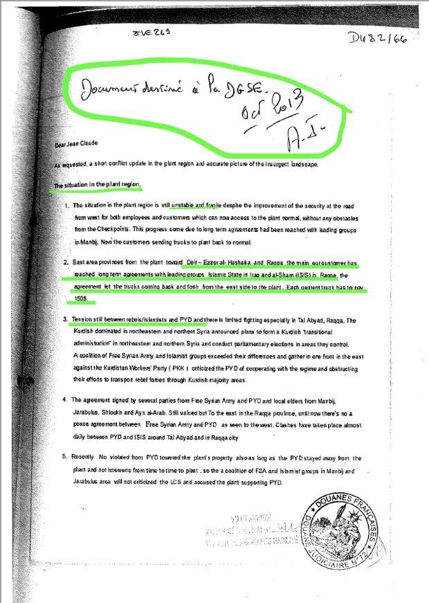 FRANSIZ İSTİHBARATININ LAFARGE'DAN FAYDALANDIĞI İTİRAFI BELGELERE YANSIDI