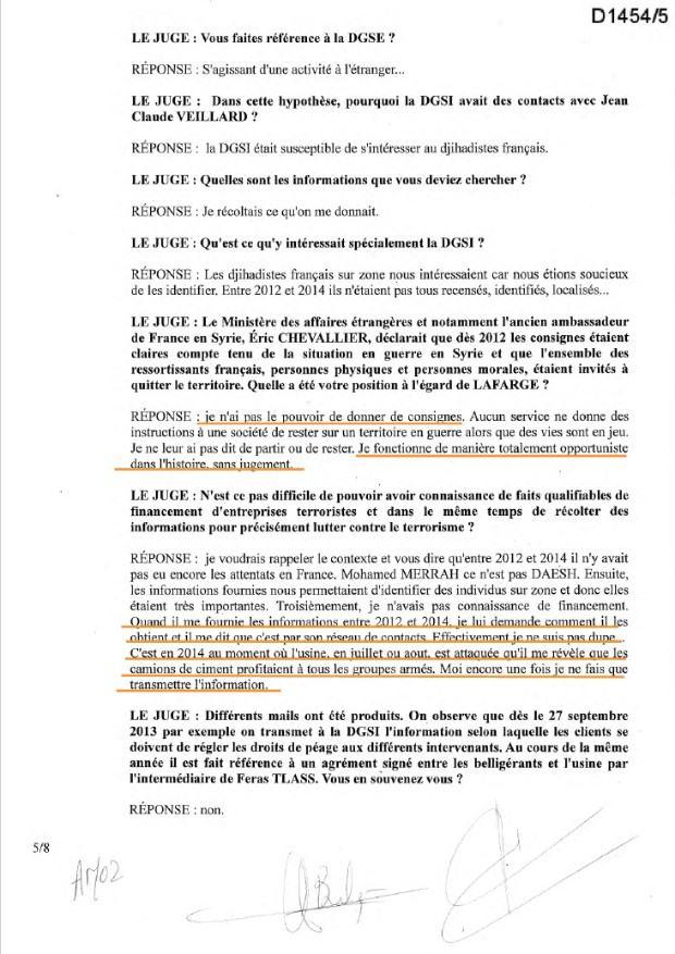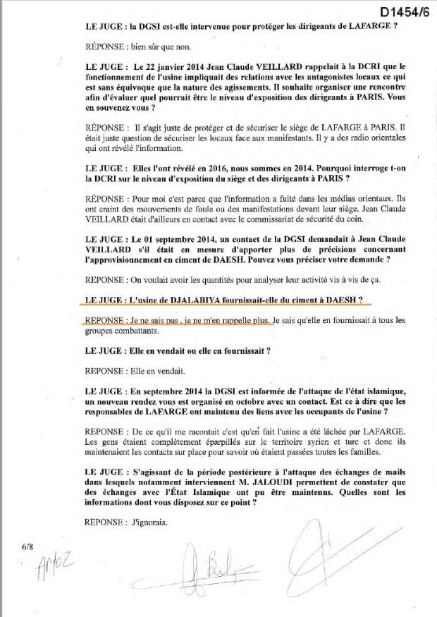 İfade tutanağına göre görevli, Lafarge’ın Suriye’deki bilgi kaynakları olduğunu kabul etti.