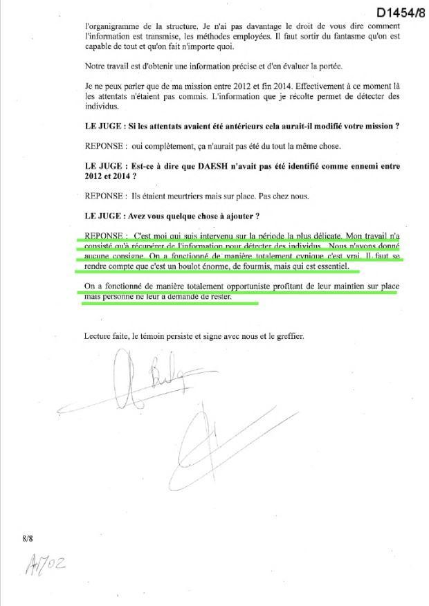 Söz konusu notlardan birinin üzerinde Ekim 2013’te Veillard tarafından elle “Fransız dış istihbaratına (DGSE) gönderildi” yazılmış bir nota rastlandı.