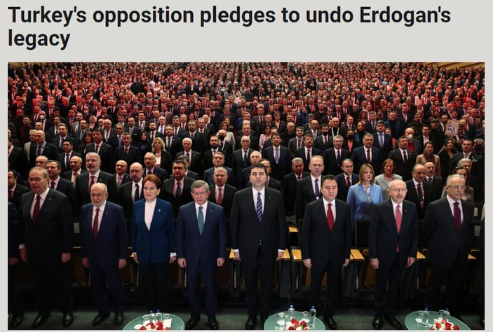 France 24, "muhalefetin, iktidara gelmesi halinde Cumhurbaşkanı Recep Tayyip Erdoğan'ın mirasını ortadan kaldırma sözü verdiğini" yazdı.