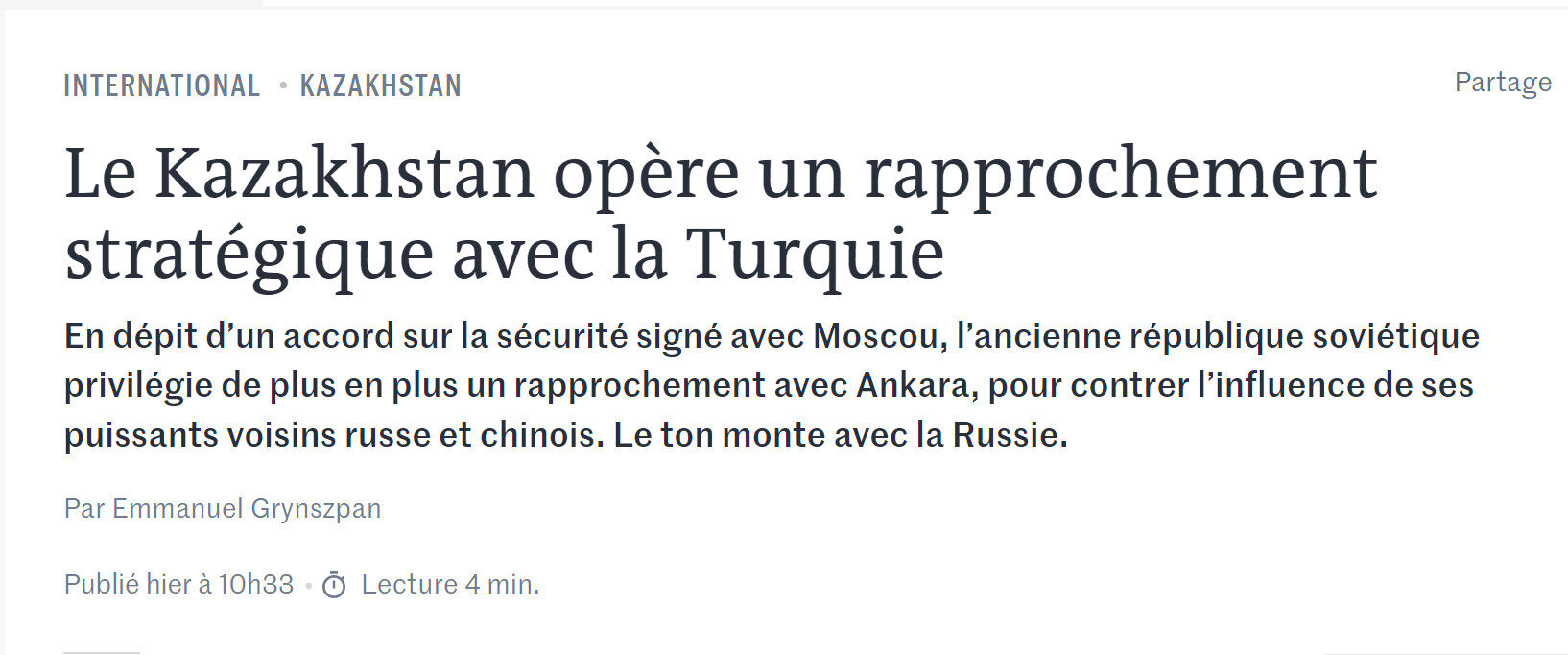 Fransız basınında Le Monde gazetesi, Kazakistan'daki olayların, bu ülkenin Türkiye ile ilerleme kaydettiği bir dönemde yaşandığına dikkat çekti.