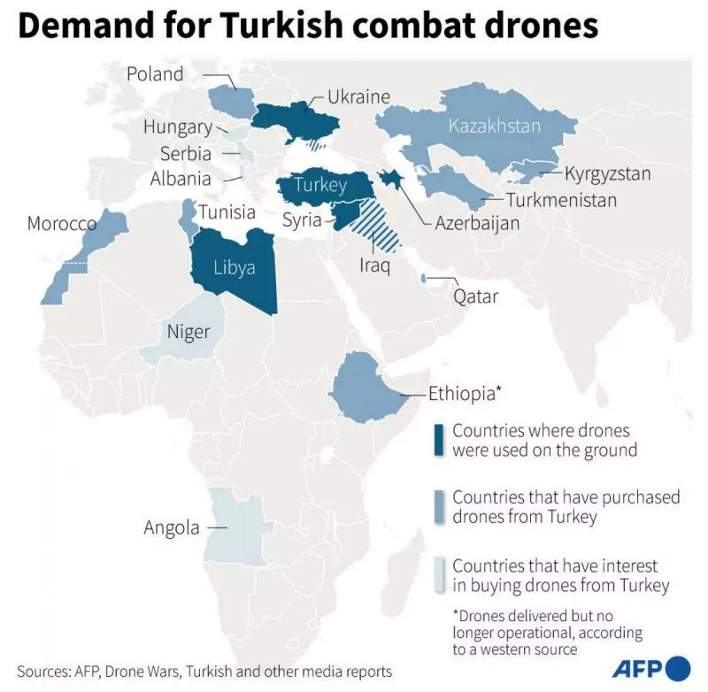 Paris merkezli AFP haber ajansı, dünya genelinde Türkiye'nin SİHA'larına olan ilgiyi gündeme getirdi.