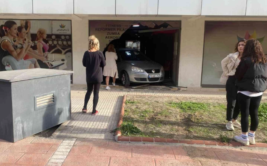 Edinilen bilgiye göre, Akbilek Mahallesi'ndeki bir spor salonuna dalan otomobil önüne kattığı cam, çerçeve ve spor aletlerini yere indirdi.