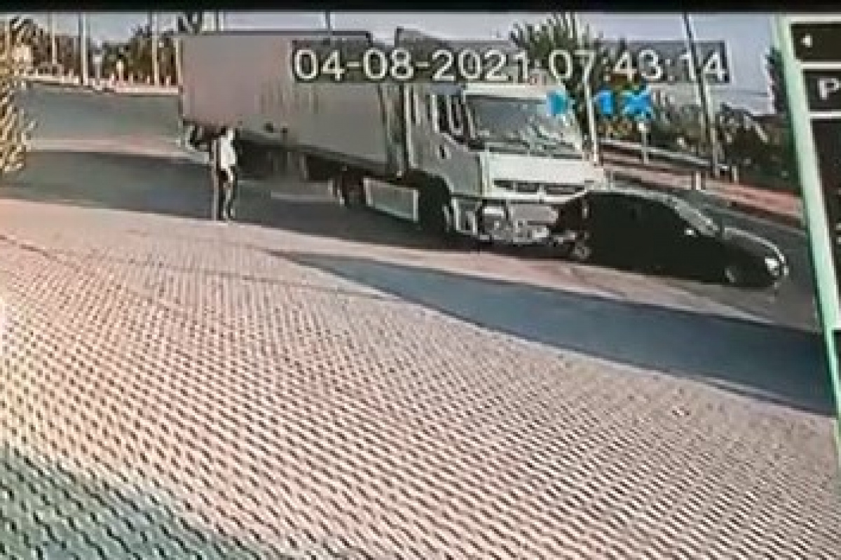 Öte yanda, freni boşalan tırın önündeki araçlara çarpması ve ayağından yaralanan kişinin markete sığınması güvenlik kameralarına yansıdı.