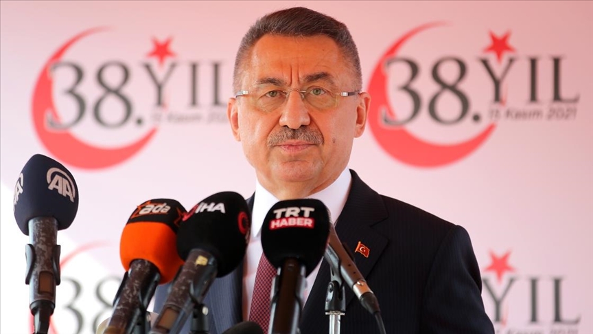 Cumhurbaşkanı Yardımcısı Fuat Oktay, Kıbrıs Türkü’nün varoluş mücadelesini başlatan Dr. Fazıl Küçük, Kurucu Cumhurbaşkanı Rauf Denktaş ve Kıbrıs Barış Harekatı kahramanları başta olmak üzere, tüm dava erlerini rahmetle ve şükranla andığını ifade etti. Oktay, Doğu Akdeniz konusunda Rum tarafının tutumunun tek yanlı olduğunu belirterek, “Akdeniz'in yaşanan insani krizler ve göçmen manzaraları sebebiyle, trajedi denizi olarak anıldığı yetmedi mi? Şimdi Rum tarafı, bölgede yeniden tek taraflı hidrokarbon çalışmalarına başlayacağını duyuruyor. Hiç merak etmesinler, onları yalnız bırakmaz, sondaj çalışmalarımıza kaldığımız yerden devam ederiz. Kimseden çekinmiyoruz. Doğu Akdeniz'de macera arayan cevabını alır” diye konuştu.