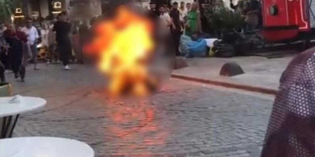 Bir anda yanmaya başlayan genç adeta alev topuna dönmüştü. Görenlerin şoke olduğu olayda yanan gence, çevredeki esnaf yangın söndürme tüpüyle müdahale etmişti.