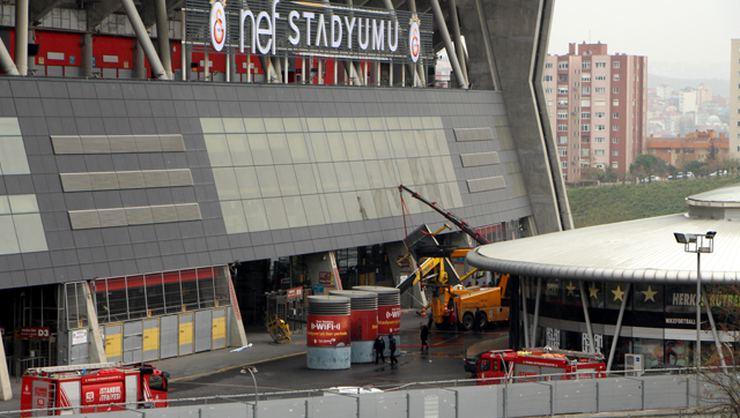 Sarıyer'de bulunan Ali Sami Yen Spor Kompleksi Galatasaray NEF Stadyumu girişinde saat 12.00 sıralarında vinç devrildi. Vincin devrilmesi nedeniyle sepet bölümünde bulunan 3 kişi yaralandı.