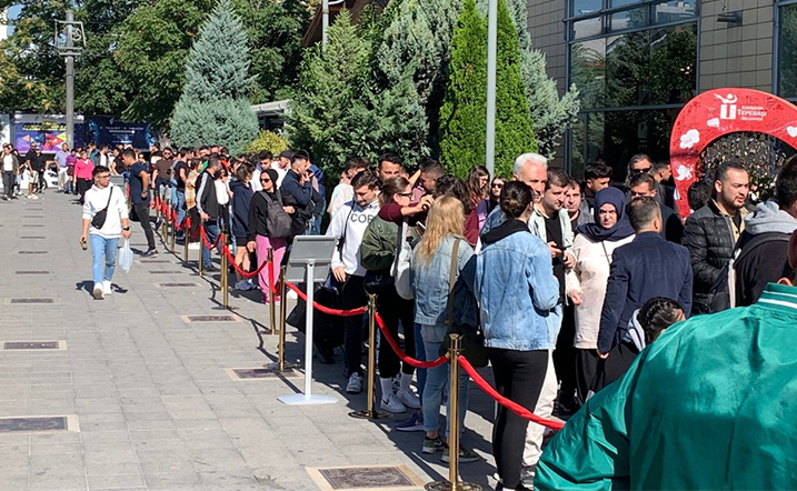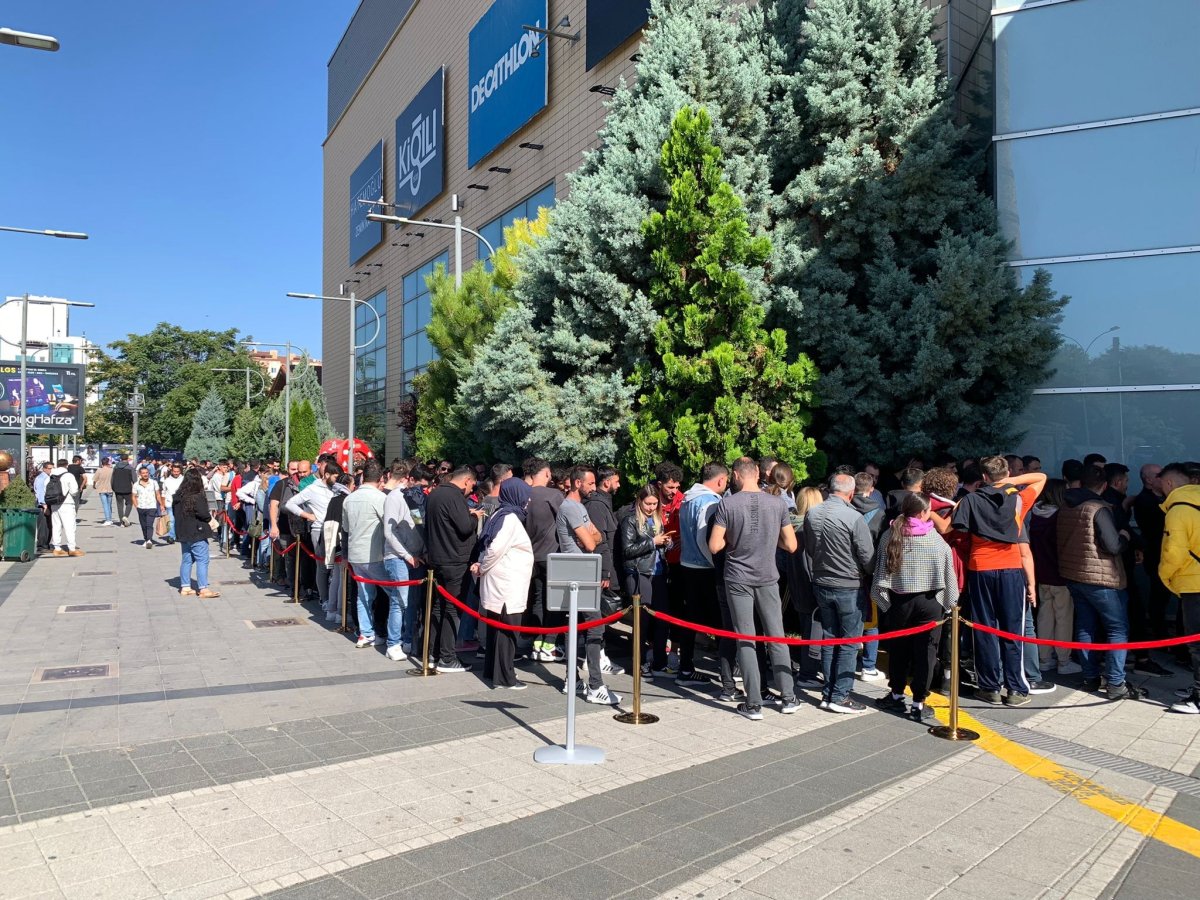 Kuyruğun arkasında bekleyenler için stokların tükendiğini söyleyen Tölü, “Sabah 8’de sıraya girdik ve sonunda zafer nidaları yükseldi. Çünkü sıranın geleceğinden umutsuzduk. Sıra köşeden dönmeyecek diye çok korkmuştuk. Annem, köşeyi dönersek alabileceğimizi söyledi. Sonunda aldık. Telefonu alınca sarıldık ve öpüştük. Stoklarla sınırlı olduğu için kart veriyorlar” ifadelerini kullanırken, anne Hacer Tölü ise, “İnternette gördük indirim olacağını, telefon için bekliyoruz. Allah bize de nasip etti, alabildik. Biz saat 8’den beri bekliyoruz. İnsanlar gelip beklemiş burada, keşke herkes alabilseydi.” dedi.