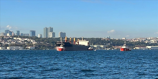 İstanbul Boğazı'ndaki gemi trafiği, Üsküdar önlerinde bir dökme yük gemisinin dümeninin kilitlenmesi dolayısıyla askıya alındı.