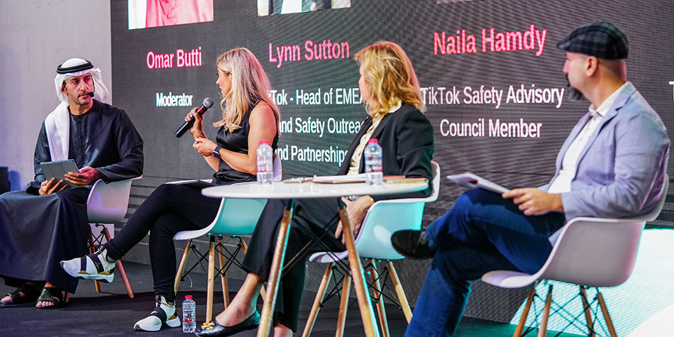 "Gençlerin ruh sağlığını korumak için dijital topluluklar oluşturmak" başlıklı ikinci paneldeyse Lynn Sutton, TikTok'un Güvenlik Danışma Konseyi Üyesi Maitha Mohamed ve Eğitim Psikolojisi Öğretim Görevlisi, Liderlik ve Ruh Sağlığı Eğitmeni ve Konuşmacısı Jana Bou Reslan yer aldı. Panelde, dijital toplulukların önemi ve sağlıklı bir dijital toplulukta yapıcı diyaloglar çevresinde gelişen içeriklerle kullanıcılar arasında oluşan şefkat bağının olumlu etkileri ele alındı.