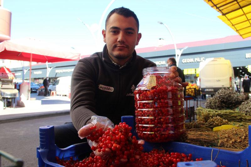 Özfidancı, bir haftada yaklaşık 300 kilo sattığını belirterek, “Bu meyve halinde ve nektar halinde de satılır. Müşterilerimizde bası kesim hazır oldun diye hazır halde gilaburu suyunu alır. Bazıları da ben kendim yapmak istiyorum taze doğal olsun diye meyvesini alır. Meyvesi salkım halinde blendere atar. Suyunu süzüp yarım su bardağına gilaburu suyu yarsına da su ilave ederek içebilir. Fiyatı kilosu 15 liradır. Bu sezon bazı ürünlerin çıkmadığı için bir haftanın içerisinde 200-300 kilo satmışımdır. İyi satışı olan bir ürün’’ diye konuştu.