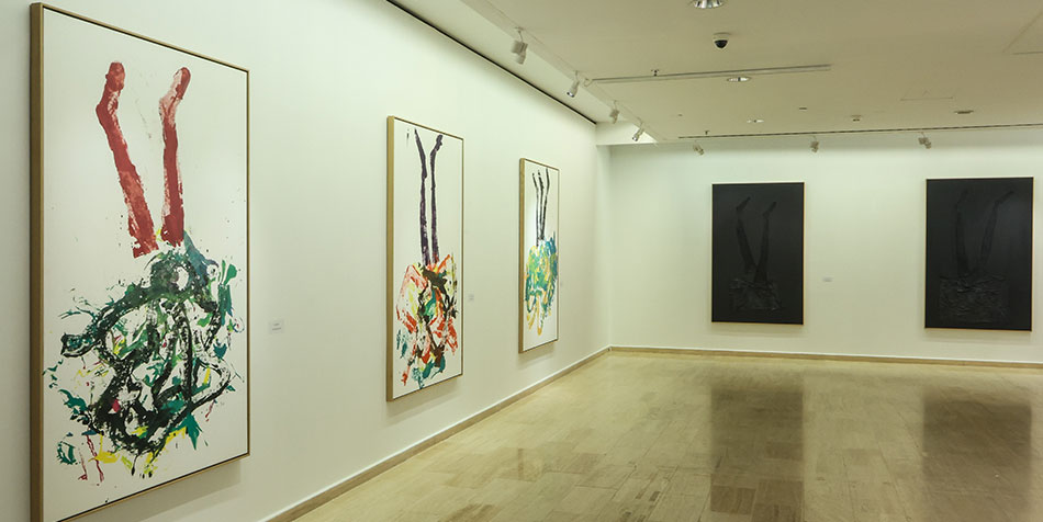 1980’lerden bu yana uluslararası sanat dünyasında derin izler bırakmış bir sanatçı olan Georg Baselitz, 20. yüzyılın ikinci yarısında Alman sanatına yeni bir kimlik kazandırmıştır. Eserleri kişisel deneyimlerinin yanı sıra Almanya'nın kolektif travması ve Nazi döneminin toplumsal bellekte bıraktığı derin yaralar tarafından şekillenmiştir. Sanatçının 1969’dan bu yana kullandığı “baş aşağı” kompozisyon tekniği ile yaptığı tablolar, serginin neredeyse tamamını oluşturuyor. Bu yaklaşım, soyutlama ile figürasyon arasında bir yerde durmasını, gelenekselleşmiş tuval üzerine resim tekniğinde yeni bir açılımda bulunmasını mümkün kılmıştır.