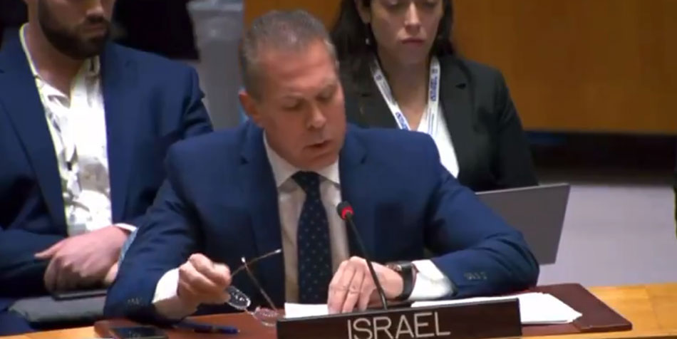 Toplantıda İsrail Büyükelçisi Gilad Erdan da bir konuşma gerçekleştirdi.
