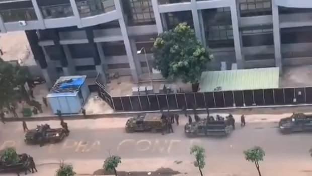 Yerel kaynakların geçtiği görüntülerde ise, askerlerin caddeleri kapattığı görülüyor.