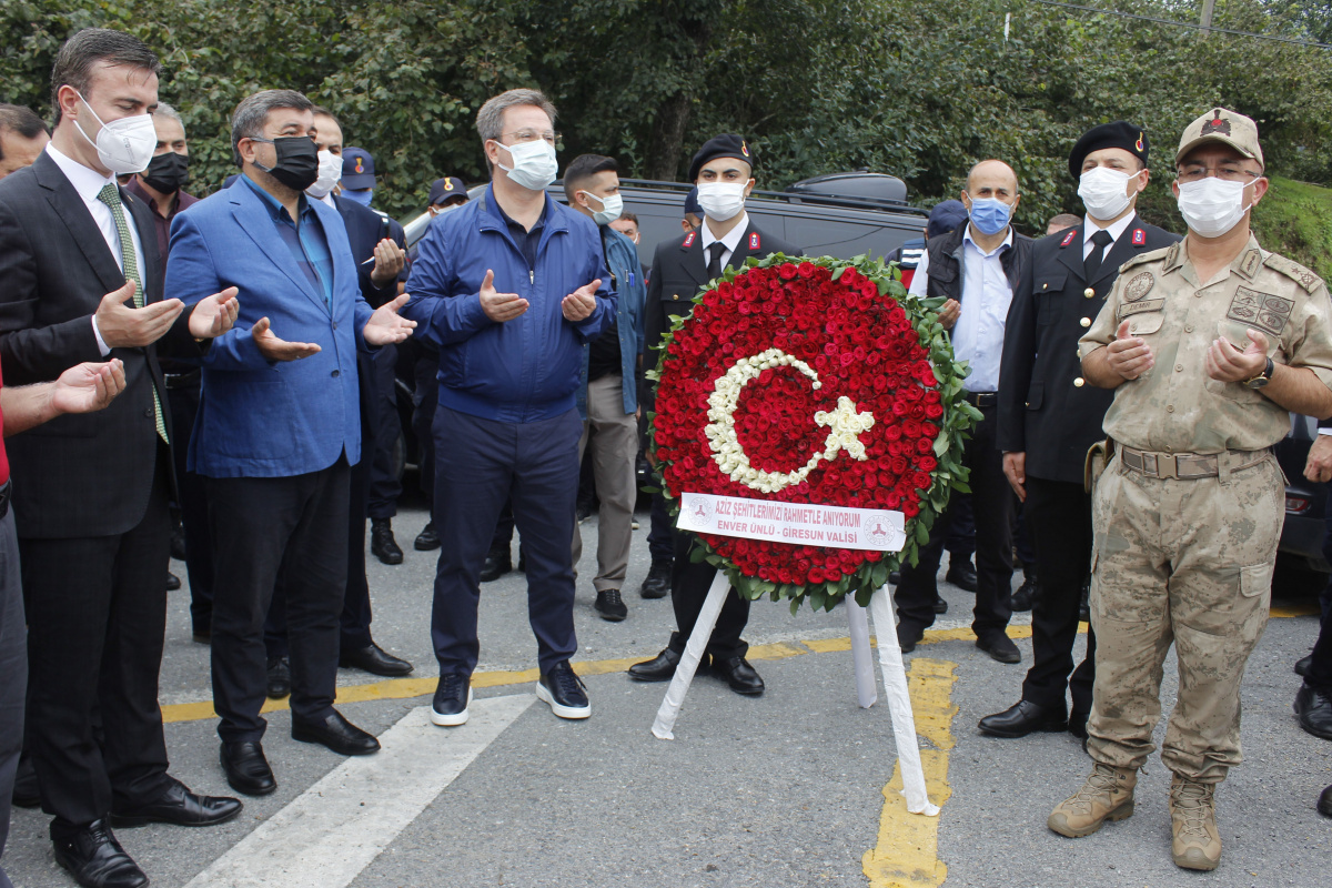 Giresun Valisi Enver Ünlü, bir daha böyle acıların yaşanmaması için tedbir almaya devam edeceklerini belirtti. Ünlü, “Acımız ilk günkü kadar taze. Bugün buradaki 6 şehidimizle birlikte toplam 15 vatandaşımızı kaybettik. Onların acısı hala yüreğimizde. Biliyorsunuz yangınlarla, Doğu ve Batı Karadeniz'deki sel felaketleriyle yine milletimiz büyük acılar yaşadılar. Ben bir kez daha aziz şehitlerimizi rahmetle ve şükranla yad ediyorum. Allah bir daha bize böyle acılar yaşatmasın. Bu acıların yaşanmaması için biz bundan sonra tedbirlerimizi alacağız. Devletimiz bu bir yıllık süre zarfında büyük oranda afetin izlerini Giresun'umuzda sildi. Giresun'umuzda sildiği gibi diğer bölgelerde de hummalı bir çalışma var. Büyük bir özveri ve gayretle çalışmalar devam ediyor. Afetin en büyük mağdurlarından olan Doğankent ilçemiz, yine afeti en büyük yaşayan Dereli ilçemiz, Espiye ilçemiz, Tirebolu ilçemiz, köylerimiz bu afetin acılarını yaşadılar. Ama devletimiz vatandaşlarımızın kalıcı konutlarını, işyerlerini kısa sürede tamamladı ve tamamlamak üzere. Kamu binalarımızın inşaatları devam ediyor. Alt yapılarımız, köprülerimiz, yollarımız büyük oranda tamamlandı. Ama ikmal inşaatları ve işleri devam ediyor. Kısa zamanda bunları tamamlayıp afetin izlerini Giresun'umuzdan tamamen silmiş olacağız” ifadelerini kullandı.