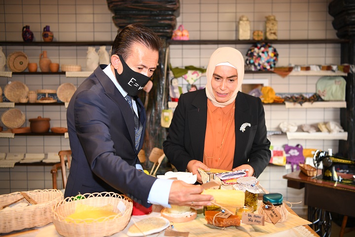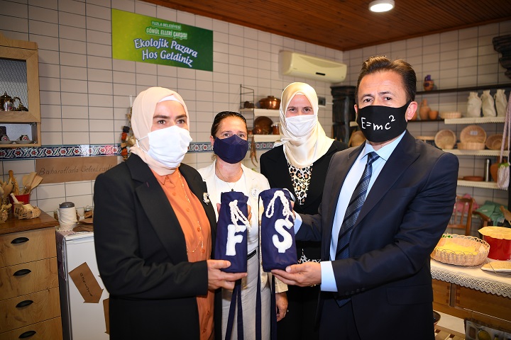 Gönül Elleri’nin markalaşmış ürün ve çalışma açısından çok farklı yönlere giden, en önemlisi ise mağdur aileleri, 26 bine yakın aileyi takip ediyoruz. Ama bunun içerisinde çok mağdur olan ailelerin üretime yönelik, maske üretiminden tutun, buradaki ürünleri üreten de mağdur ailelerdir. Dolayısıyla bu ürünlerin satılması ile birlikte, mağdur olan hanımefendiler evlerine ekonomik bir girdi sağlıyorlar. Kazan kazan modeliyle bir çok sosyal sorumluluğu içerisinde bulunduran bir projedir. Ben eşim de dahil olmak üzere bu projede yer alan, Gönül Elleri’nde yer alan ilçemizde 26 bin aileyi takip eden ve bu tür çevre hassasiyeti duyarlılığı geliştiren tüm hanımefendilere yürekten teşekkür ediyorum. Onlar kanatsız meleklerdir” dedi.