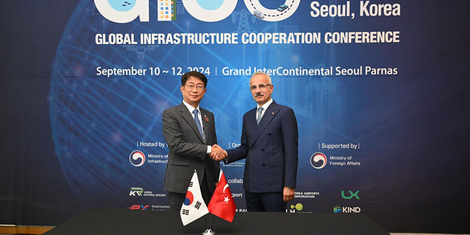 Bakan Uraloğlu, Türkiye’nin 15 yıldır yüksek hızlı demiryolu işleticisi ülkelerden olduğunu belirterek, “250 kilometre saate kadar işletilen hızlı tren hatlarımız var. Şimdi de Ankara-İstanbul arasında 350 kilometre saat hızla seyahat edebilecek bir demiryolu projesi üzerinde çalışmaya başladık. Koreli mevkidaşımla süper hızlı treni konuştuk. Projemize büyük ilgi gösterdiler. Bu da bizi çok memnun etti. Şu anda ülkemizde 2 bin 251 kilometre hızlı tren hattı bulunuyor, bunu kısa vadede 5 bin kilometreye çıkarmayı düşünüyoruz.” dedi. Bakanlık bünyesinde bulunan TÜRASAŞ tarafından 160 kilometre saat hızla seyahat eden elektrikli trenleri imal edildiğini ve kullanıma sunulmasının da konuşulduğunu belirten Bakan Uraloğlu, “Şimdi ise 225 kilometre hızla giden trenin üretimini planlıyoruz.” ifadelerini kullandı. Türkiye ve Kore arasında, denizcilik alanındaki iş birliklerinin de konuşulduğunu ifade eden Bakan Uraloğlu, iki ülke arasında taslak bir deniz taşımacılığı anlaşması üzerinde müzakerelerin devam ettiğini anımsatarak bu konuda da mesafe kat edilebileceğini düşündüğünü belirtti.
