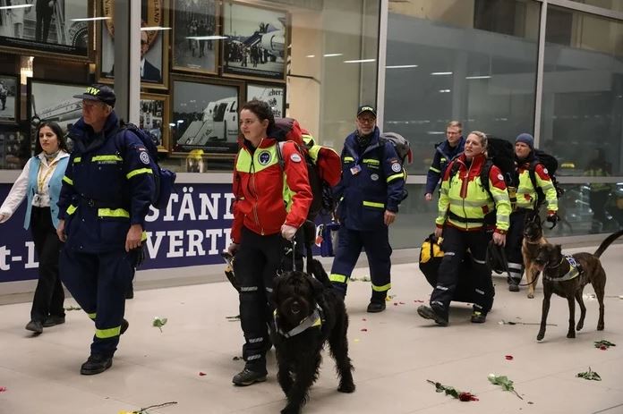 International Search and Rescue (ISAR) ile Alman Federal Teknik Yardım Kurumuna (THW) bağlı arama kurtarma ekiplerinden oluşan yaklaşık 100 kişi, dönüşlerinde Köln-Bonn Havalimanı'nda Türkiye'nin Köln Başkonsolosu Turhan Kaya'nın yanı sıra kalabalık bir grup tarafından Türk-Alman bayrakları ve yollara serilen çiçeklerle karşılandı.