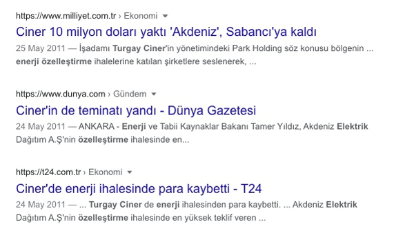 Turgay Ciner'e ait Park Holding, 2011 senesinde Akdeniz Elektrik ihalesine girmiş, bir süre en yüksek teklifi vermesine karşın uzayan ihale sürecine devam edememiş ve çekilmişti.