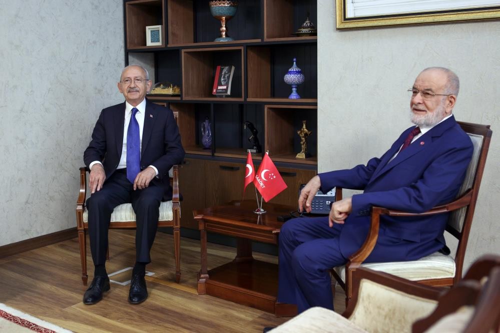 CHP Genel Başkanı Kemal Kılıçdaroğlu, Saadet Partisi Genel Merkez binasında Temel Karamollaoğlu'nu ziyaret etti.