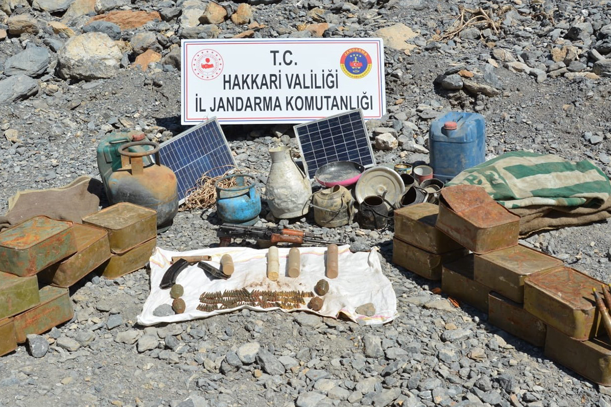 Açıklamada, “İlimiz merkez ve Çukurca ilçesi kırsal alanında JÖH ve jandarma komando birliklerince düzenlenen operasyonda, bölücü terör örgütü mensupları tarafından kullanıldığı değerlendirilen mağaralar içerisinde yapılan aramada; 420 adet 23 mm. uçaksavar mühimmatı, 4 adet savunma tipi el bombası, 4 adet RPG-7 roketatar sevk fişeği, 1 adet A-47 kaleşnikof piyade tüfeği, 125 adet A-47 kaleşnikof piyade tüfeği fişeği, 3 adet A-47 kaleşnikof piyade tüfeği şarjörü, 2 adet tüp, 2 adet güneş paneli, 3 adet battaniye ve muhtelif yaşam malzemesi ele geçirilmiştir. Konu ile ilgili adli tahkikat devam etmektedir” denildi.